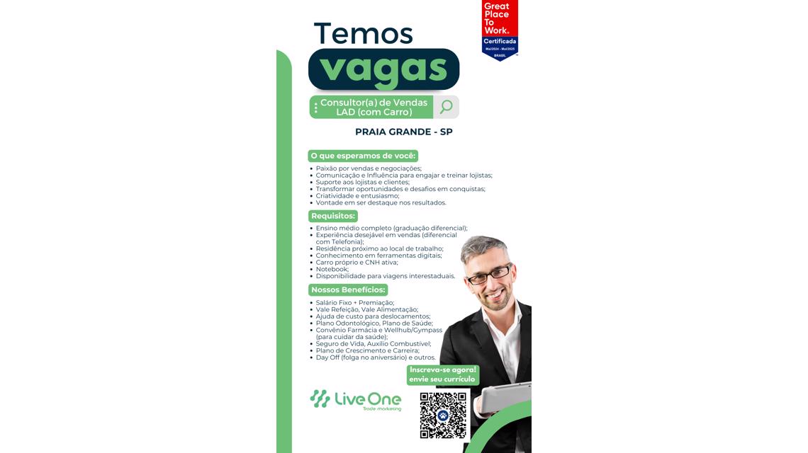 Se você é movido(a) por conexão com pessoas e tem paixão por resultados, o Grupo Live One é o lugar ideal para você brilhar e crescer!